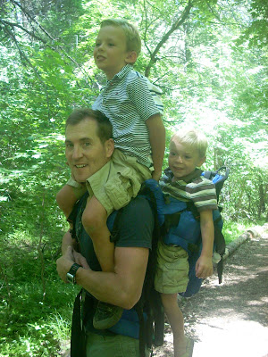 This is how Scott rolls...one kid on his shoulders and one on his back